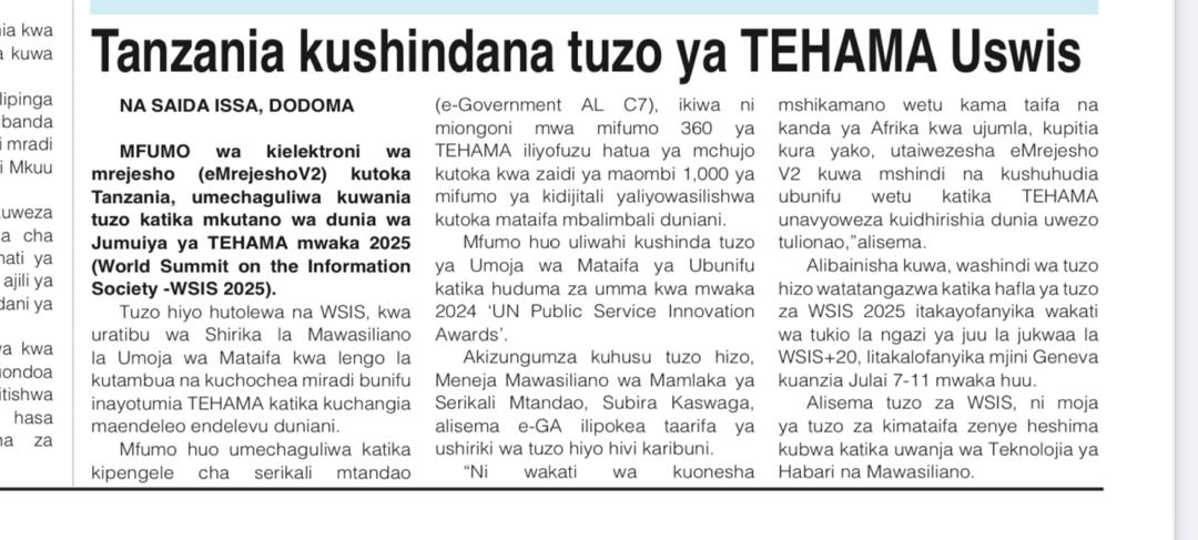 Tanzania yazidi kupenya tuzo za TEHAMA (Nipashe)